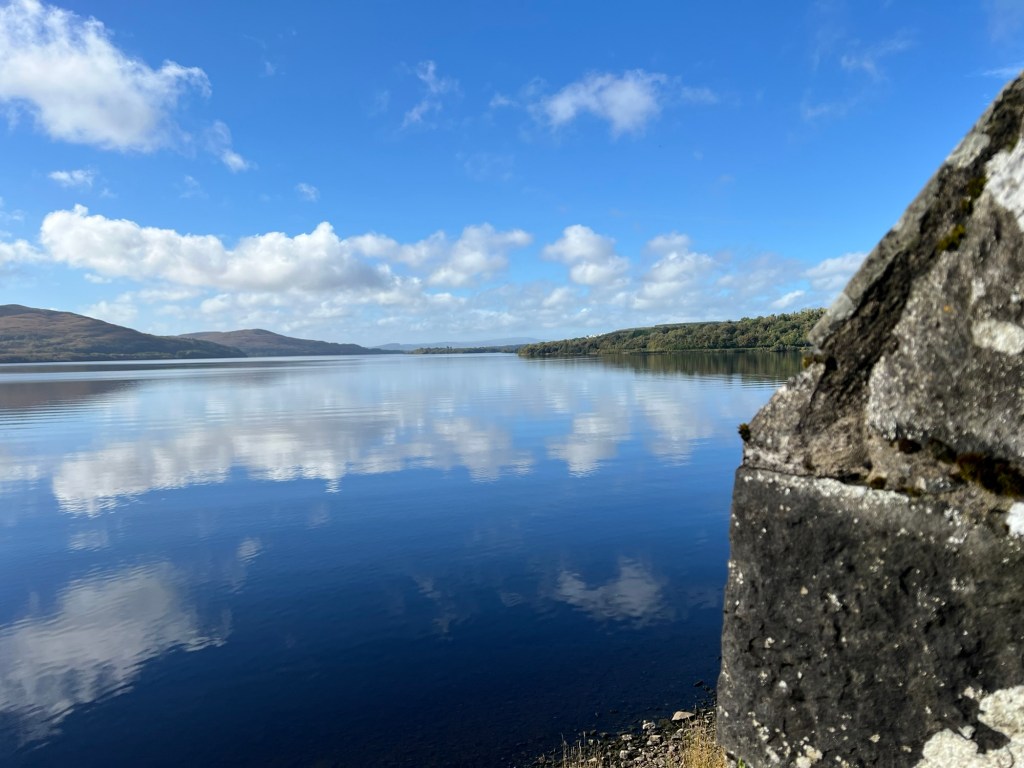 A photo from up on the wall looking over Lough Gill in the general direction of Sligo.