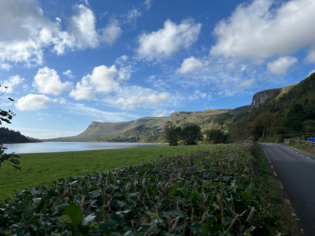 A photo looking across Lake Glencar towards Sligo.