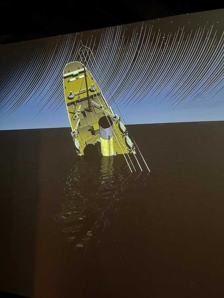 The museum had a series of short videos depicting the process of riveting the metal plates to the hull of the Titanic.