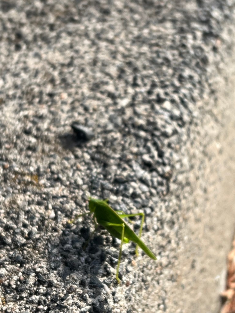 A grasshopper on the gutter. l thought it was unusual to see a grasshopper this stage of autumn.