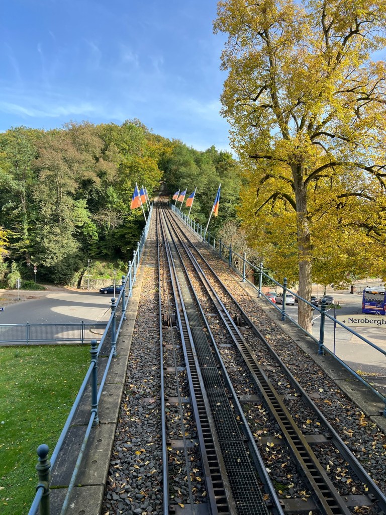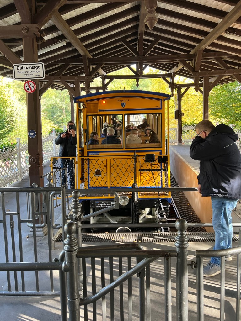 We traveled to a place which has a train that travels a short distance up a slope.