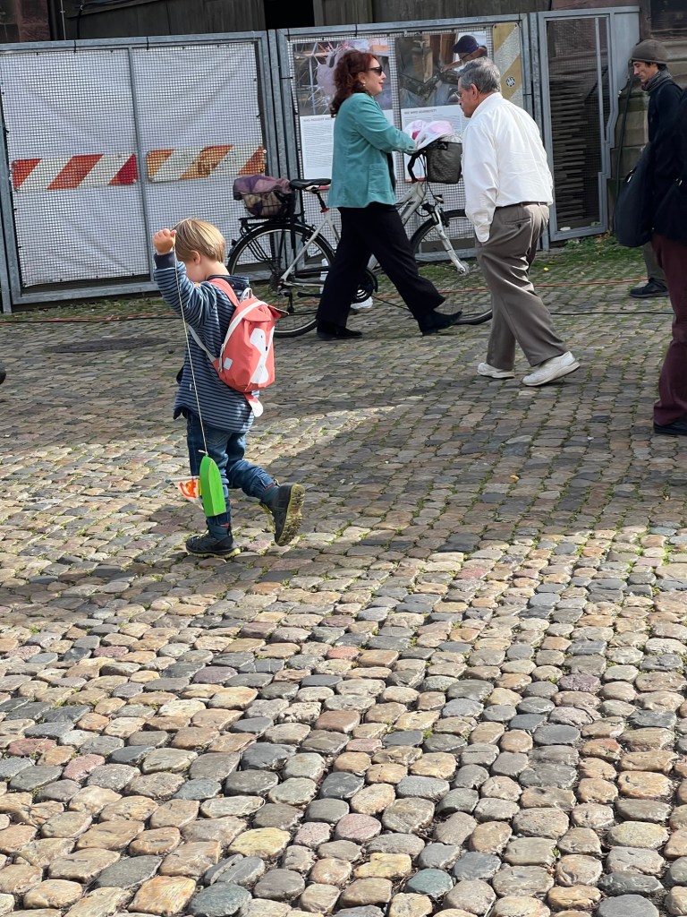 They pull them along on a piece of string. Sarah did also says there is an old traditional saying associated with them. That is if you fall/step into one it means you must marry a girl from Freiburg and stay.