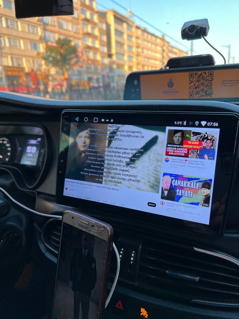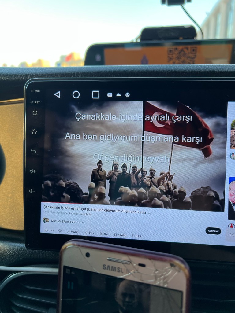 I pulled up Eric Bogle’s song “The band played Waltzing Matilda” for the driver. He then showed me a song from the Turkish side.
