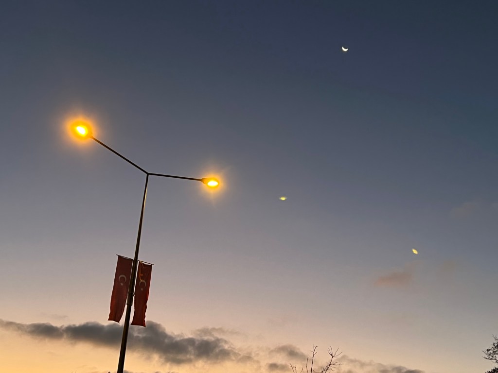 While we were standing outside I noticed the shape of the moon. It was the shape of the moon on the Turkish flag. Only difference was it was upside down to how the moon is shown on the Turkish flag.