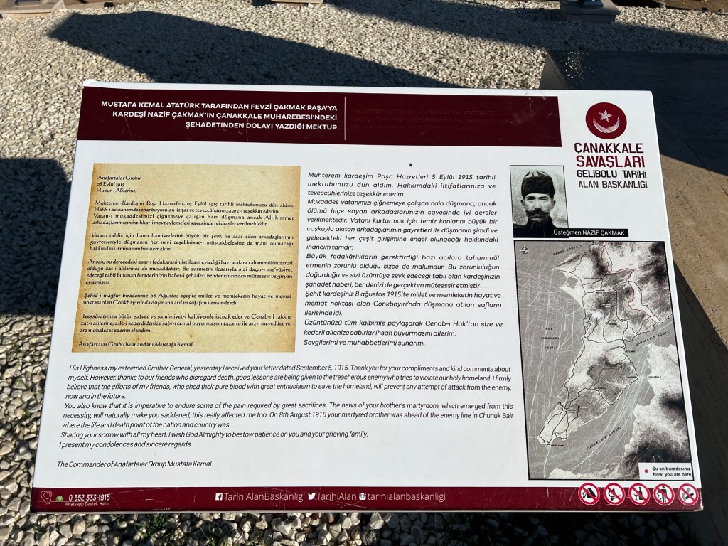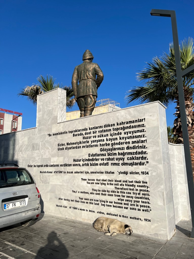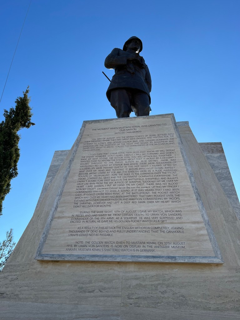 And here is a nearby statute of Mustafa Kamel Ataturk with his words of the battle.
