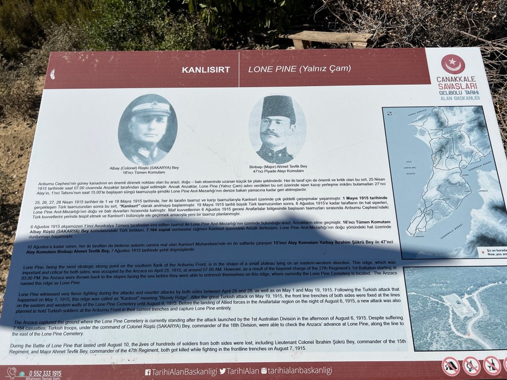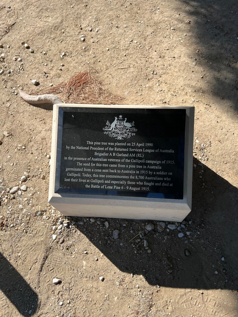 Then onto Lone Pine cemetery. A photo of a pine tree planted by the RSL in 1990 to commemorate the lives lost of those who fought in the battle for Lone Pine.