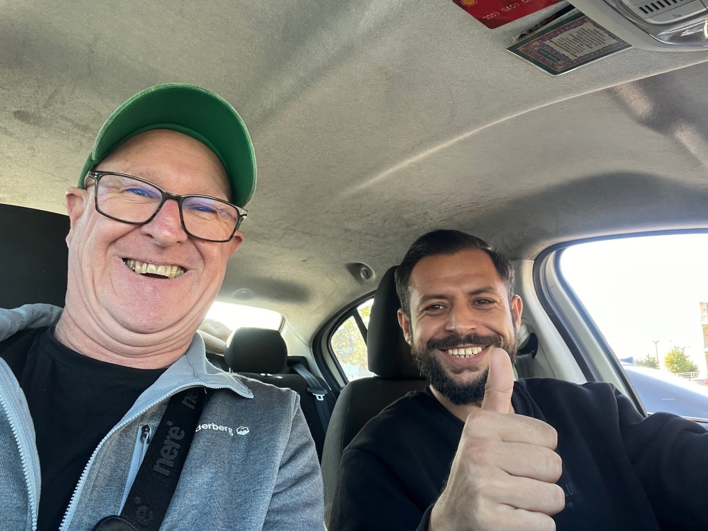 I wasn’t 100 percent sure the taxi would arrive. But, in the end, he arrived a few minutes ahead of time. A quick selfie and we were on our way.