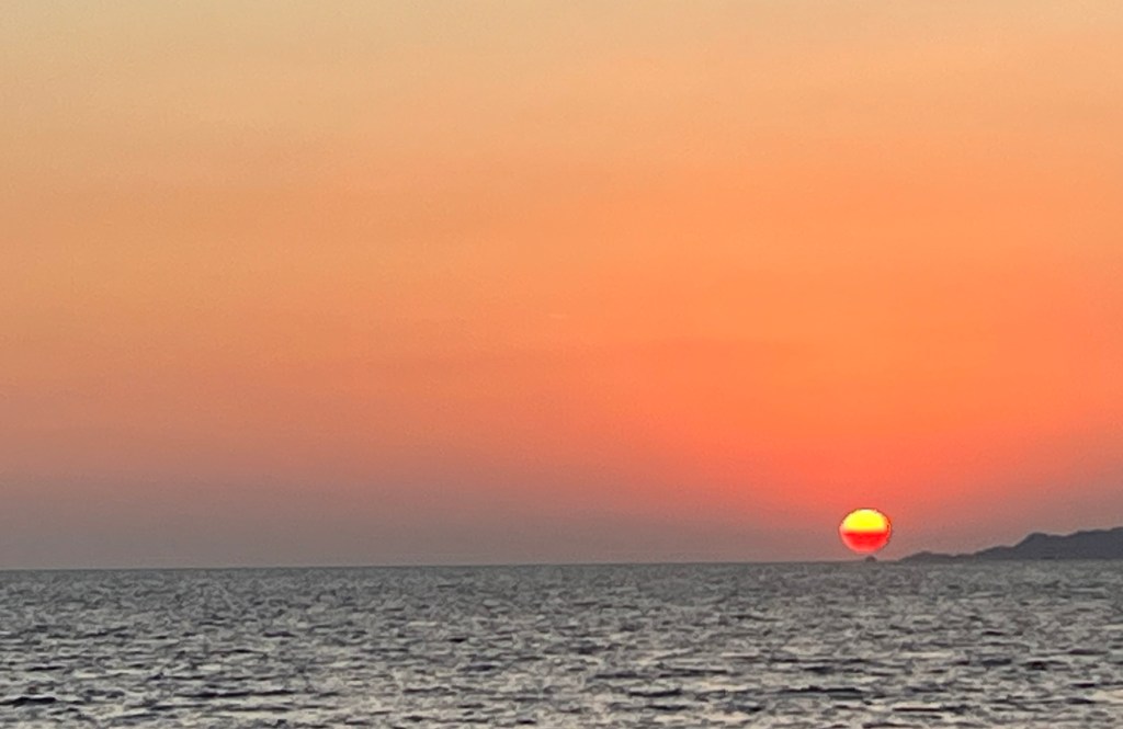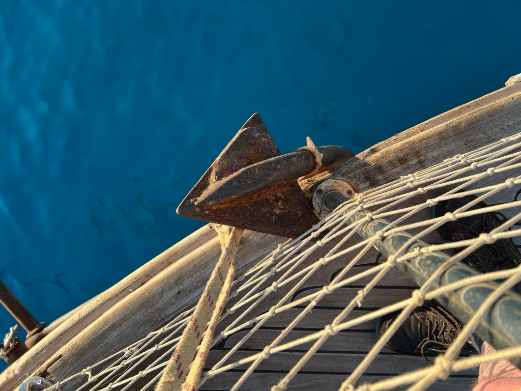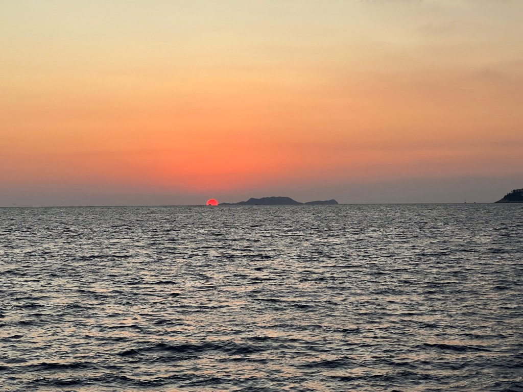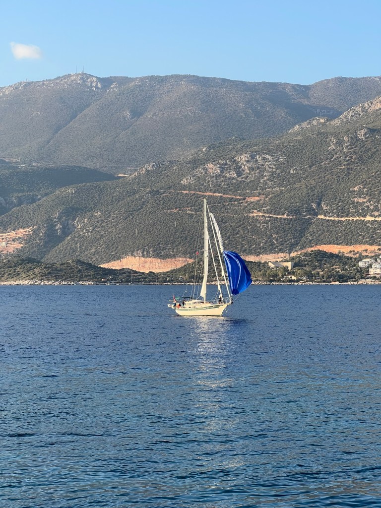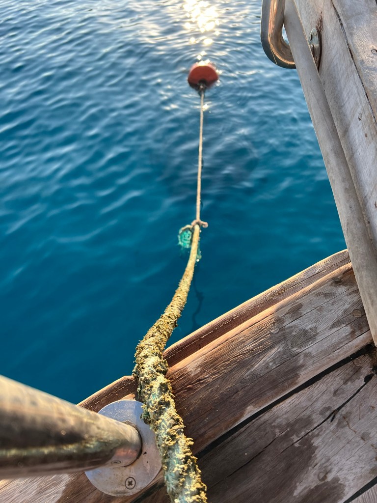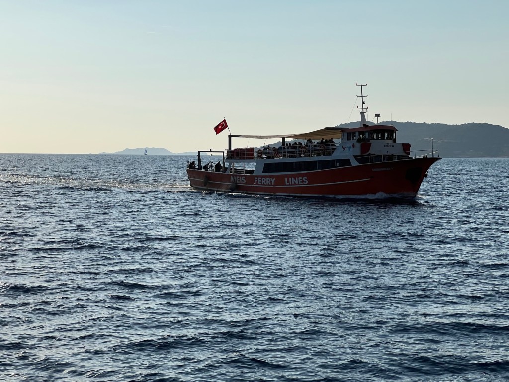 We passed the ferry coming back from a close by Greek island as we made our way to the first anchor point.