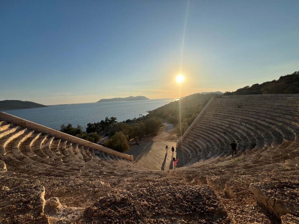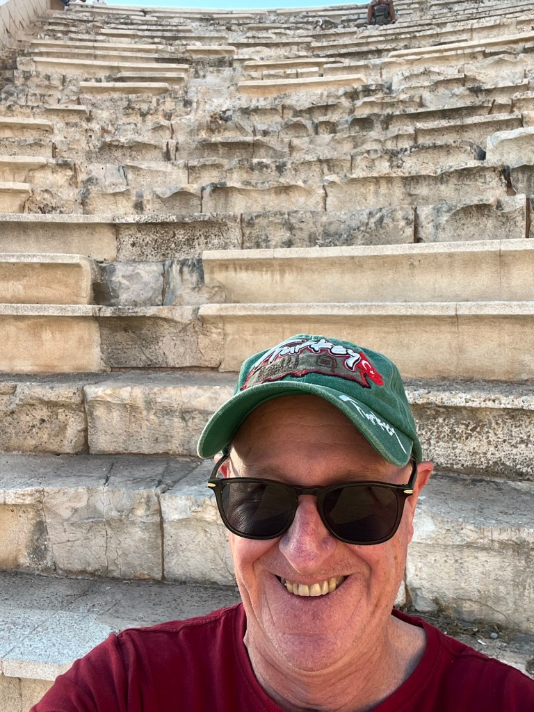 About 4:30pm l made my way back to the theatre where l watched the sunset during my first day in Kas. A quick selfie with the stairs behind me.