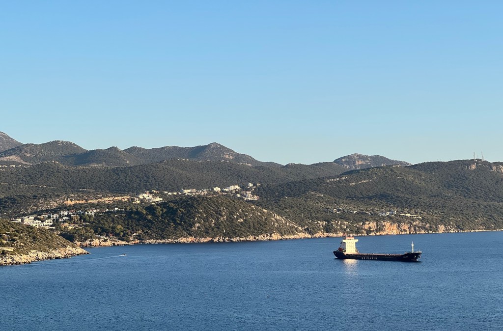 There was a large ship anchored just off Kas in the harbour.