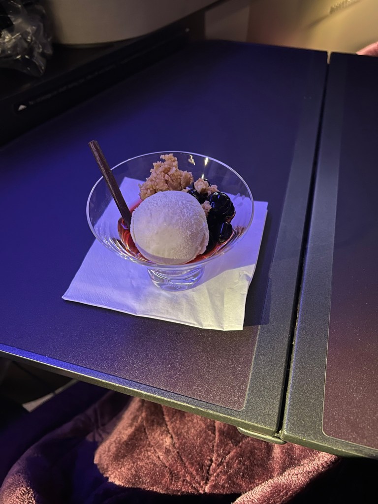 The flight has been great with some turbulence! Just enough to stop you from sleeping despite being all tucked up in the horizontal position.